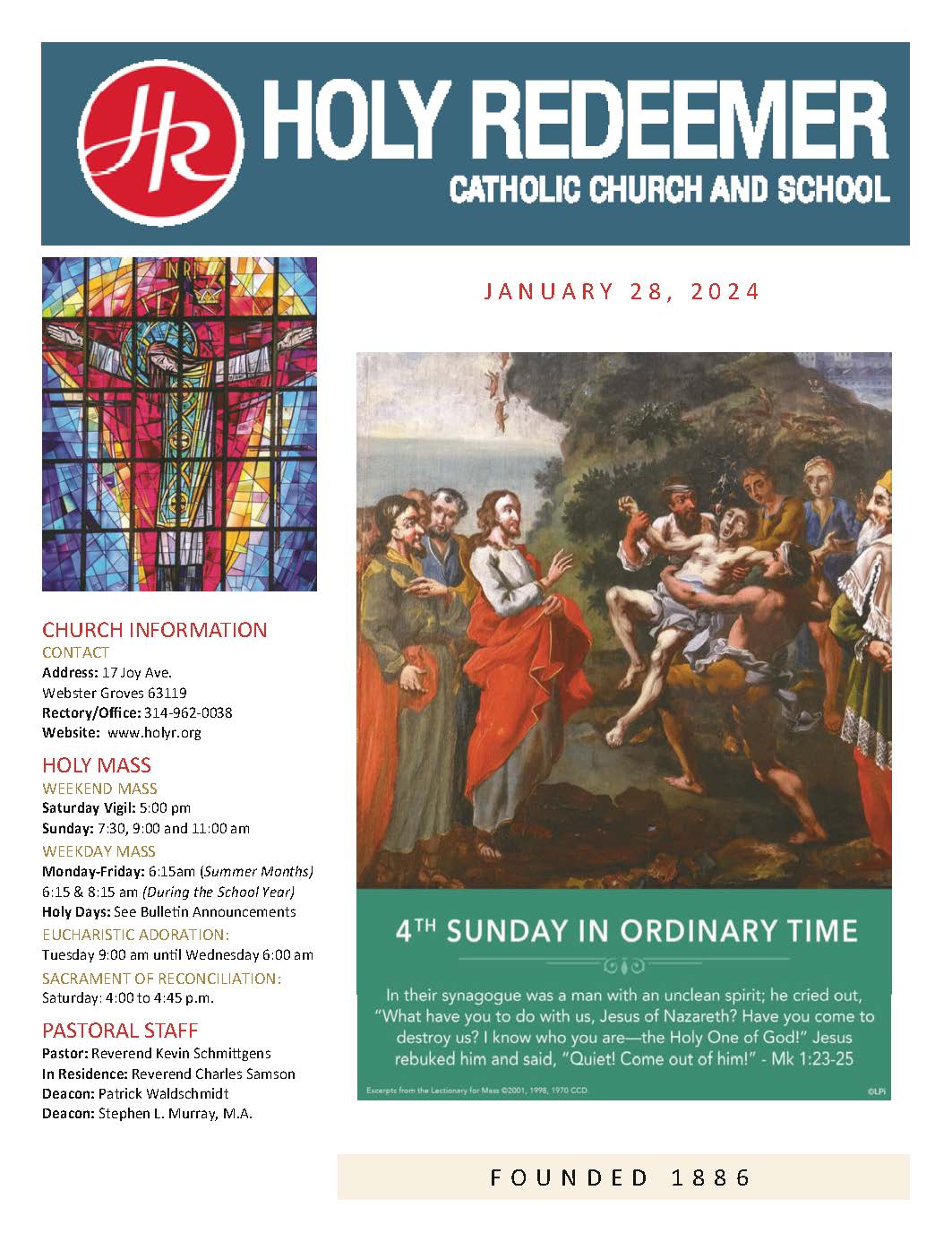 Sunday Bulletin 01/28/2024 Gallery Sunday Bulletin 01/28/2024 Bulletin Sunday Bulletin 01/28/2024 [...] Sunday Bulletin 01/28/2024admin2024-01-28T05:38:49-06:00